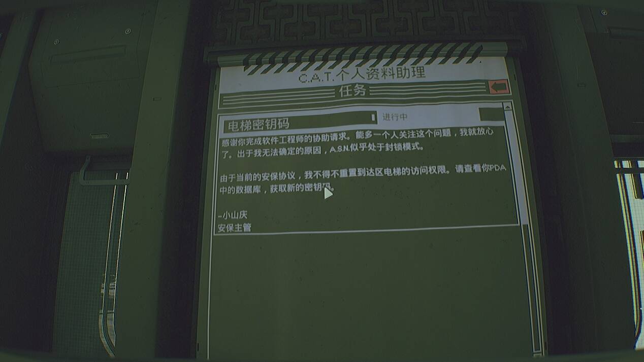 在引导上, 主要故事可以通过CAT联网和特定机端进行互动获取,并且具有明确的指向性。不过如果想要探索整个世界,各个角落里也有不少“惊喜”——和惊吓。特别需要说明的是,本作在探索视角上提供左右倾斜身体和踮脚、下伏等特殊姿态,对探索空间进行了有效扩展。
