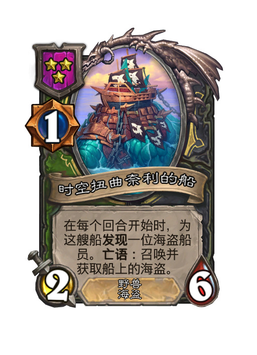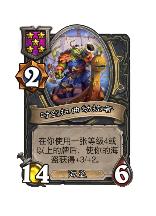 - 新:在你使用一张等级4或以上的牌后,使你的海盗获得+3/+2。