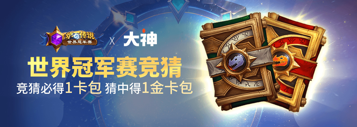 12月18日12点前,登录网易大神App 进入【炉石传说】圈子,搜索“世界冠军赛竞猜”进入竞猜页面,完成竞猜任务即可领取。12月23日12点,相同链接开放金卡包领取通道。