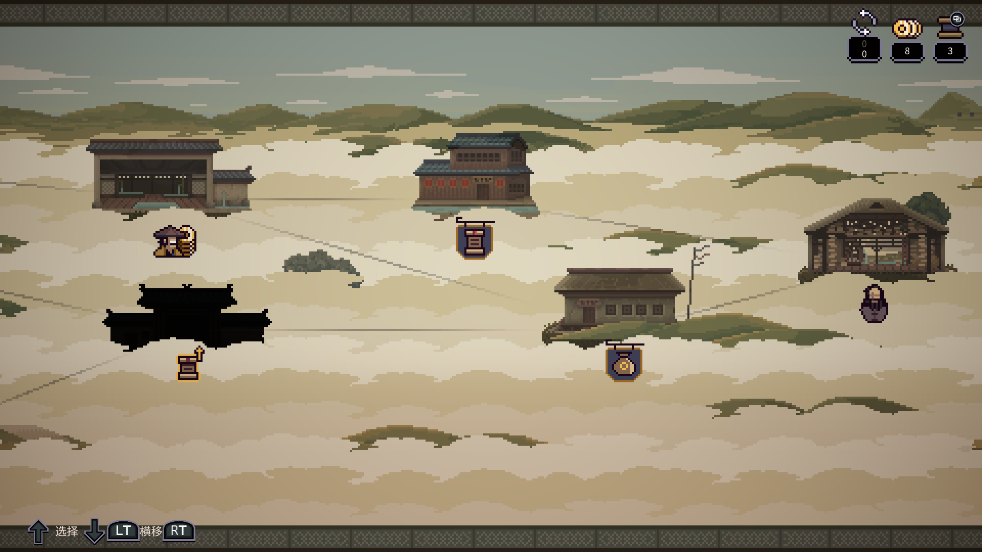 《预视武宗》的视觉表现堪称像素艺术的一次升华。游戏采用手工绘制的像素风格场景,构建了一个沉浸感十足的舞台。游戏的像素风格在复古模仿的基础上,融合了经典武侠电影的元素。