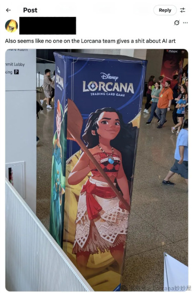 近年来ai技术越来越发达,不少品牌为了减少成本开始选择使用ai进行创作。洛卡纳作为迪士尼的产品一直以来以精美的原创插画为傲,本次事件的主角是James C Mulligan。他总共只为洛卡纳提供了3个插画,可能因为这三张牌都太不厉害,直到今天大家才发现它们确实有些问题。