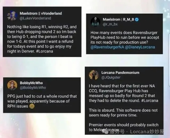 上周末结束的丹佛CCQ上主要发生了两件很灾难的事情,大家纯当乐子来看。一是这场不到一千人的洛卡纳比赛使用了之前官方承诺通过了1900人压力测试完全可以应付DLC级别赛事的自主研发平台RPH(Ravensburger Play Hub)。结果第二轮的时候出现了所有成绩丢失,第二轮重赛的逆天情况。