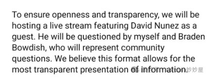 Nunez所属战队The Forbidden Mountain随后发表声明,说将在日后组织线上直播,“邀请”Nunez作为“嘉宾”,解释事情原委。实际上就是要开线上批斗大会。“很遗憾”最后TFM的负责人表示,他们一时冲动这样决定,直播取消,Nunez离队。