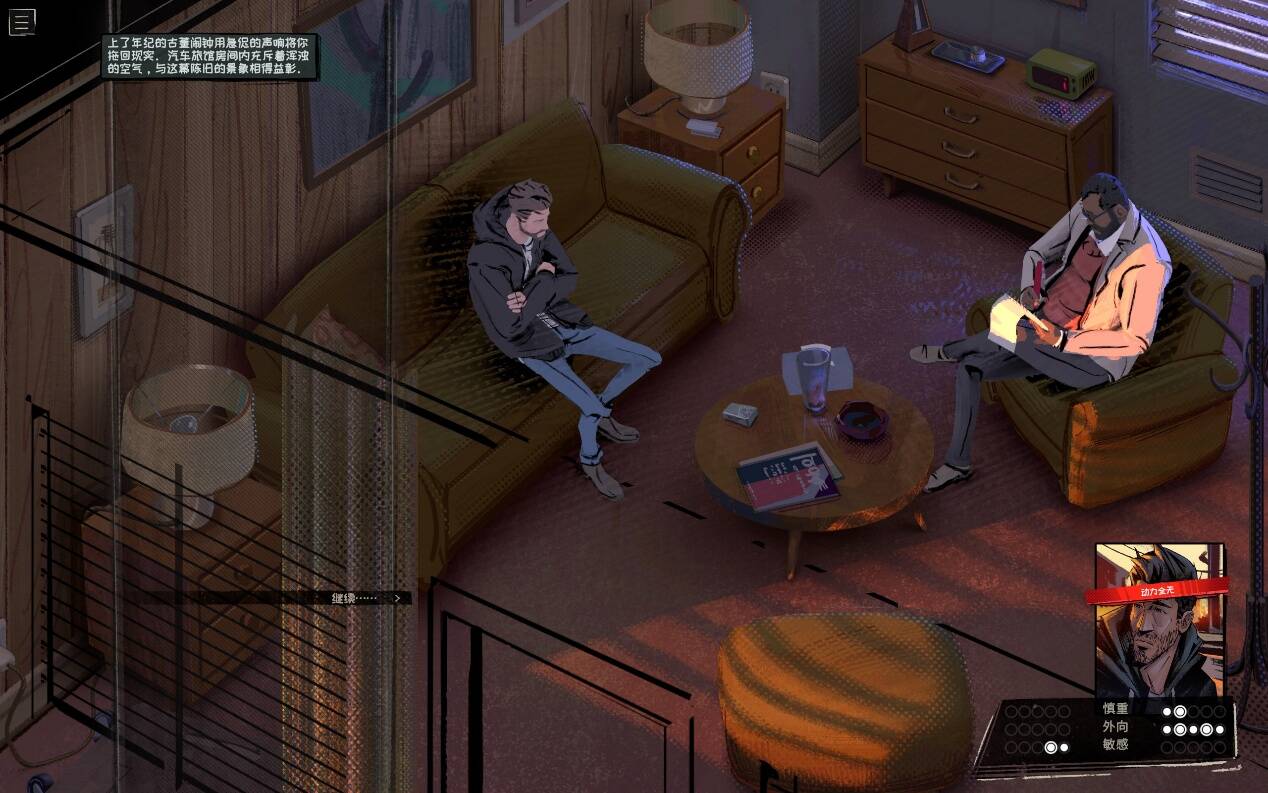 游戏也提供了漫步或者驾车等等特殊场景的交互场面,用来拓展故事的表现力。通过光影和动作的变化,给出了额外的角色心理状态反馈信息。