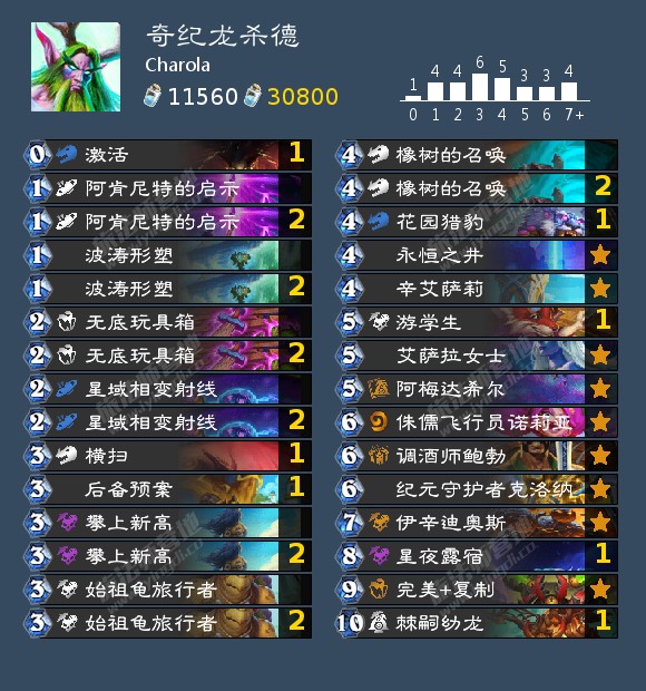 可以橡树拉出始祖龟定向抽取纪元守护者,波涛形塑可以把高费牌或者otk组件移动到牌底从而被减到1费,从而大大加速otk。