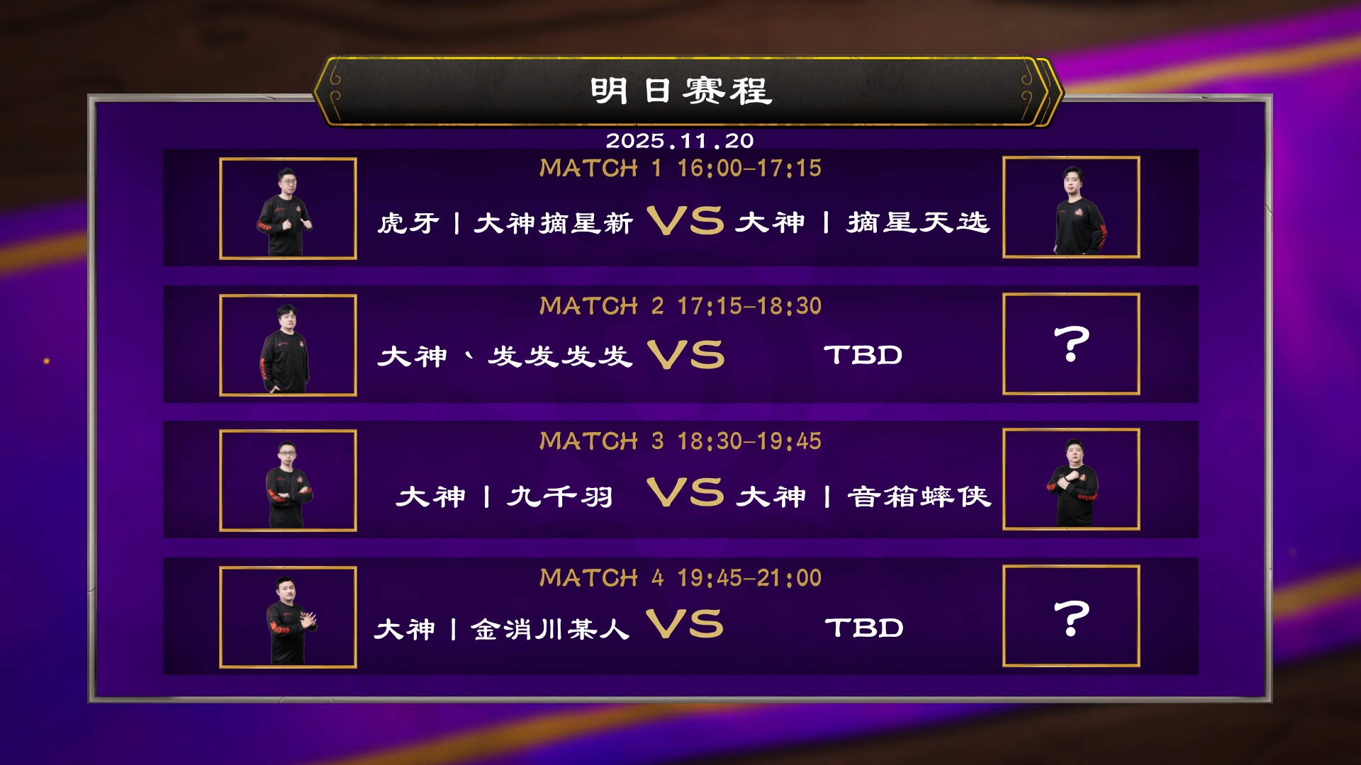 北京时间11月17-20日,22-23日(14:00,16:00等开始时间不一样,详见当天节目单)