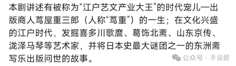 而这部大河剧,名为《べらぼう〜蔦重栄華乃夢噺〜》,译为《岂有此理》,讲述的是江户时代出版之王茑屋重三郎的故事。