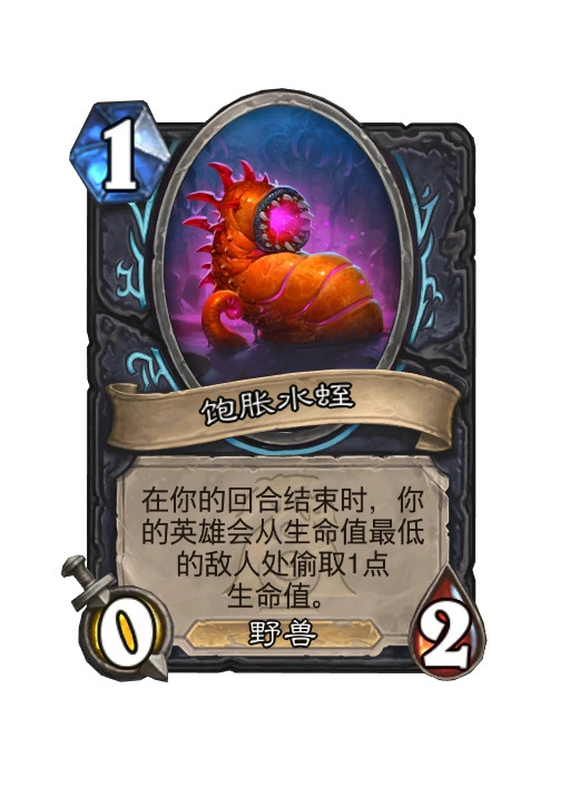 我们打出丑恶的残躯,召唤了两条水蛭,可以看到水蛭选择了英雄吸取生命值,但是对手却没有失去生命值,我们也没有获得生命值