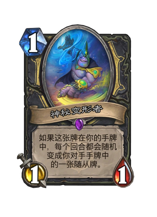 当我们的神秘变形者变成对手的神秘变形者时 因为会保留buff的原因 它就能自己变成自己手里的随从了,这是一个bug