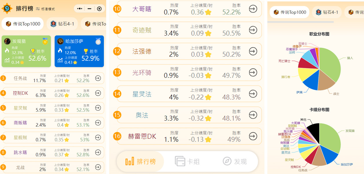 [链接] 驴子网 全服传说前1000分段 卡组数据 (微信小程序HS卡牌大师)
