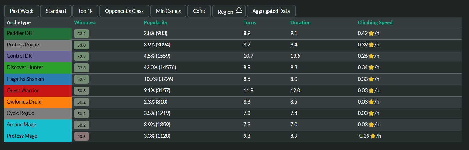HSReplay 全服传说前1000数据 (微信小程序: HS石炉之家)