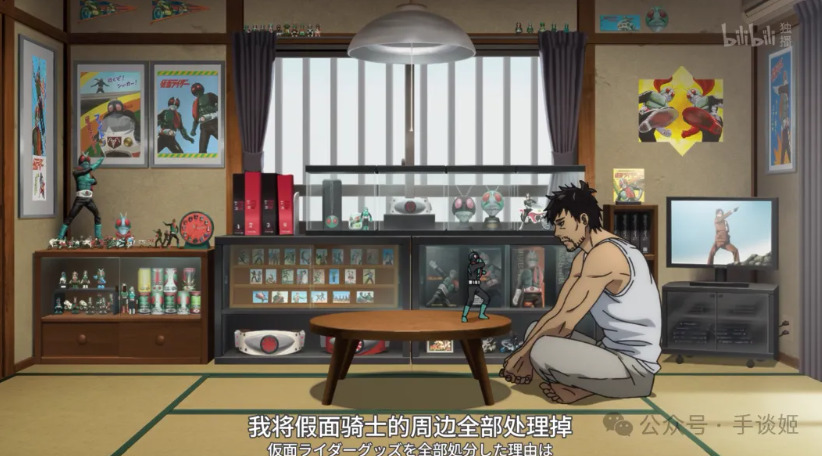 十月新番《东岛丹三郎想要变成假面骑士》中有这样一个场景——男主岁数大了(40岁),没啥亲人也没成家,盯着自己花大量金钱淘来的初代假面骑士周边,觉得自己哪天要是孤独死了这些收藏品会被当垃圾一样便宜处理掉,于是找二手店给卖了。