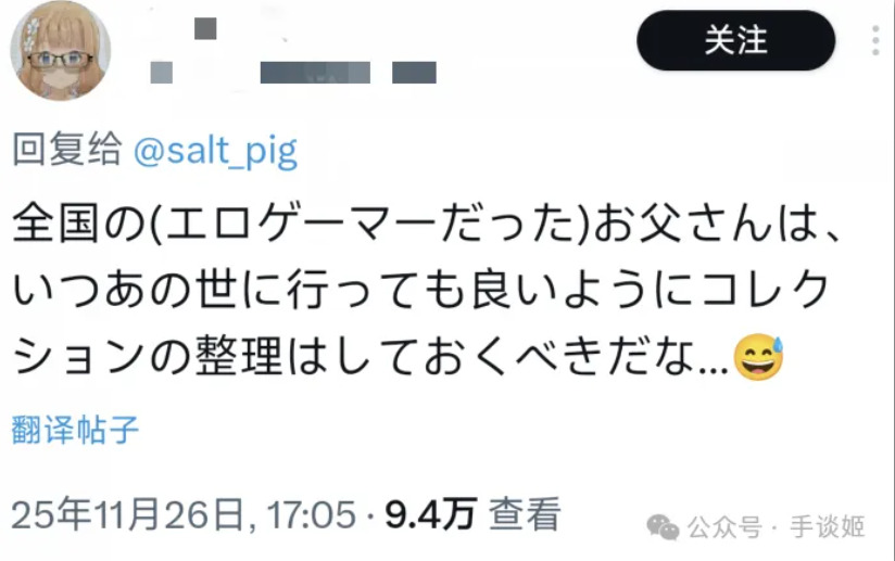 “全国那些(曾是成人游戏玩家的)父亲们,在离世前还是得把这类收藏整理好啊……”