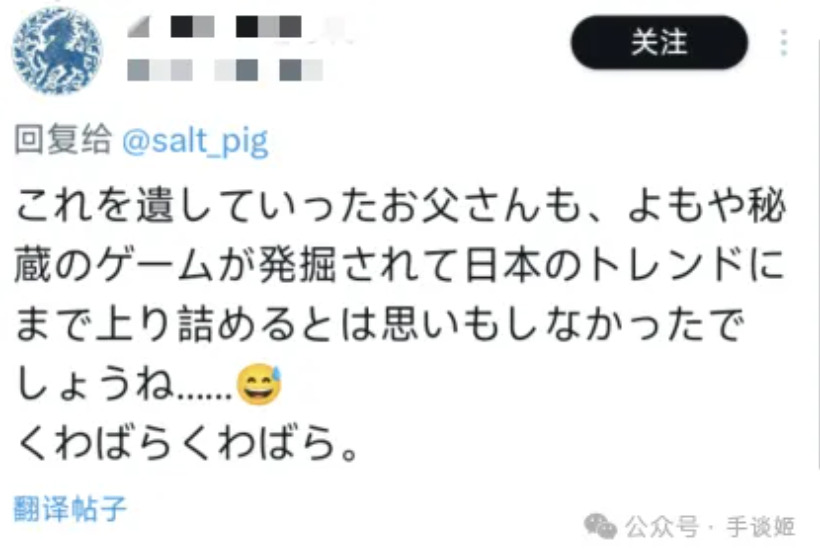 “当年收藏着这个游戏的令尊,肯定也没想到自己的珍藏游戏会被翻出来,还火到日本的趋势榜单上吧……真是太好笑了。”