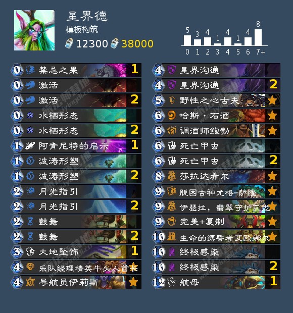 树人德上限很高,动辄3费4费满场叫杀,但一旦场面被解就会运行困难,直伤更是为0。但是这并不影响我们打德鲁伊这种缺乏解场的卡组重拳出击。