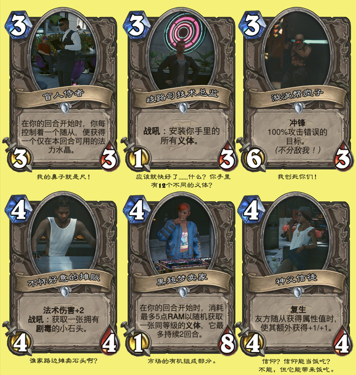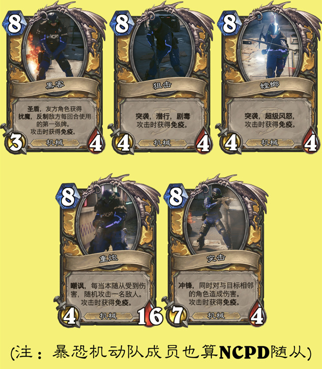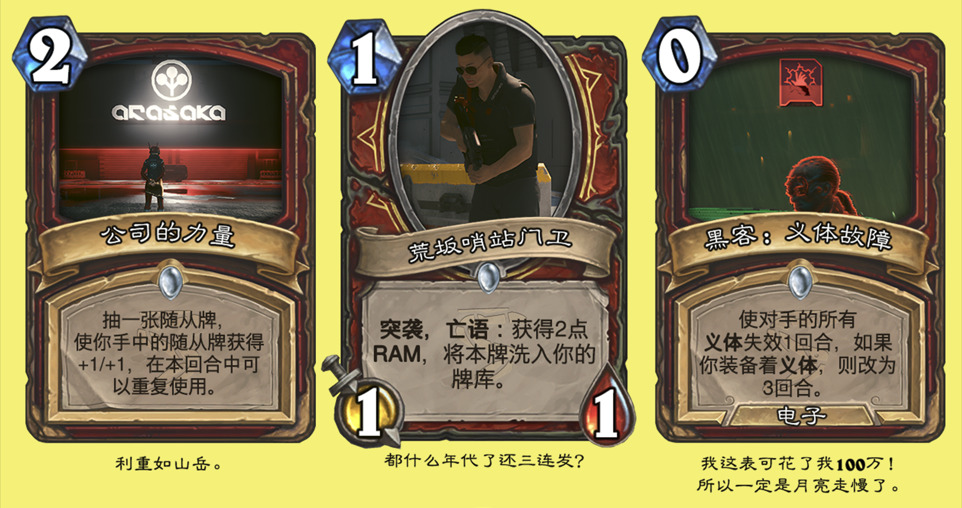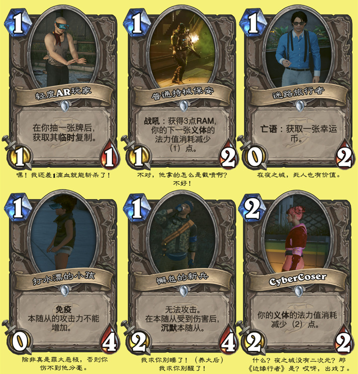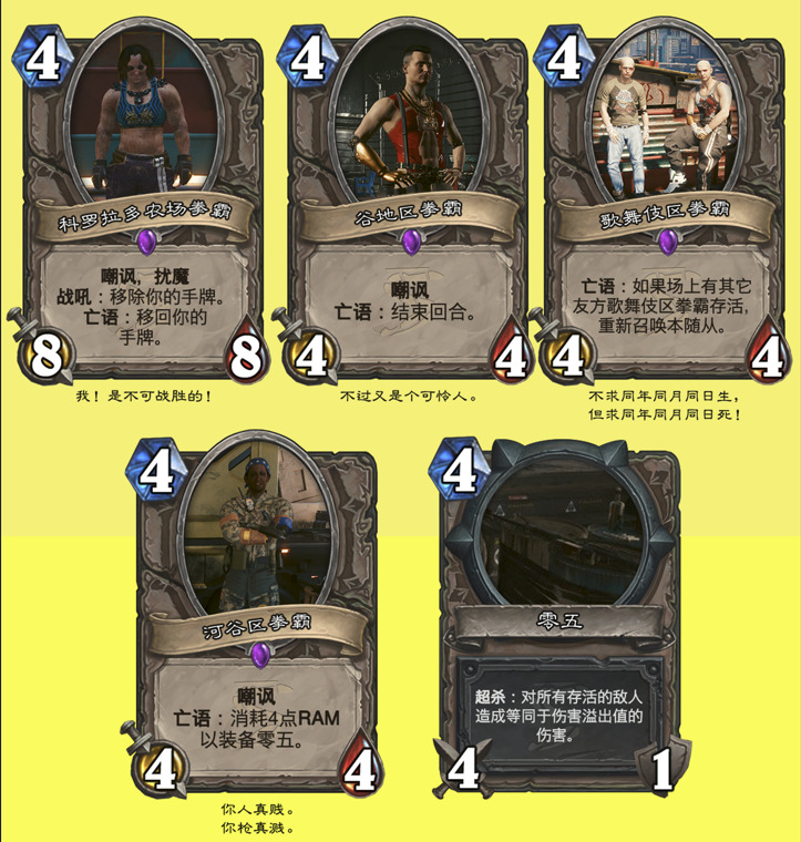很遗憾,由于扩展包卡位有限,有很多角色我未能制成卡牌(如荒坂赖宣、李德、百灵鸟等),也许后会有期!