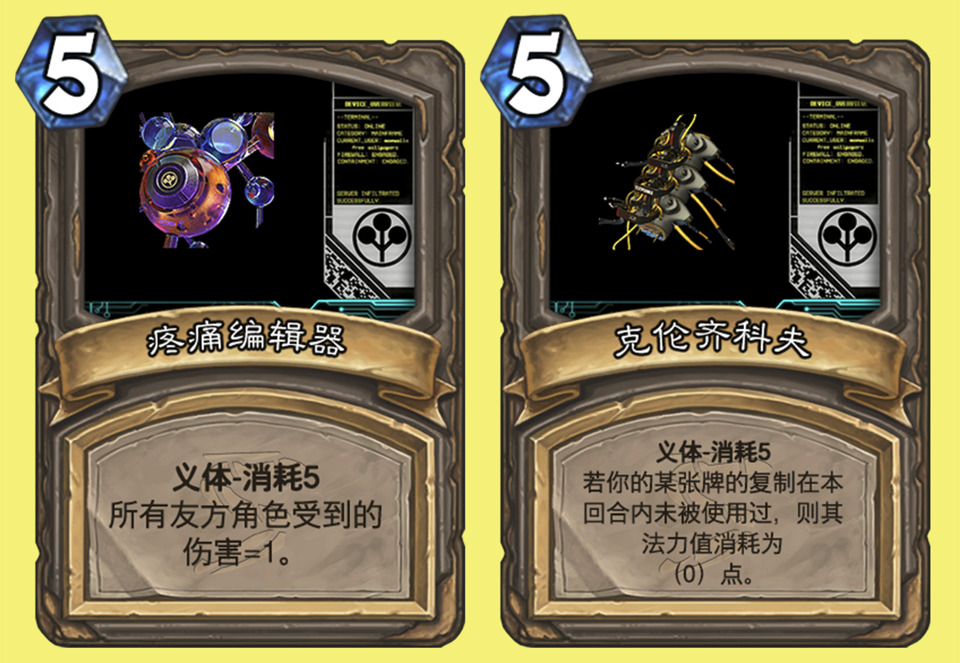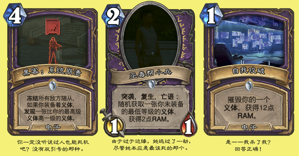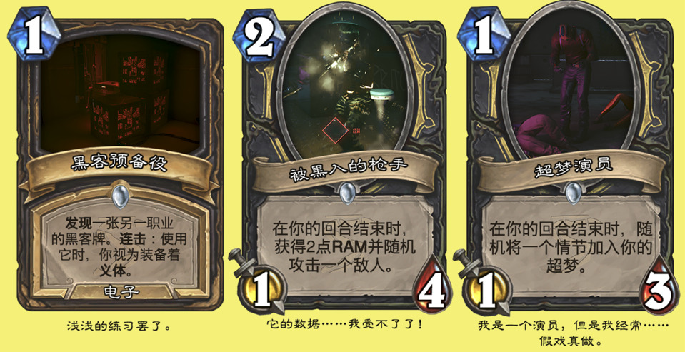 新系列:黑客牌(每个职业各一张,均为电子法术)。