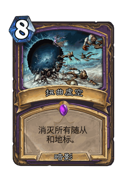 3.大量AOE:为应对狂野快攻,几乎满编了术士AOE;礼物牌找的扭曲虚空还可以清除(伊莉斯的)地标。