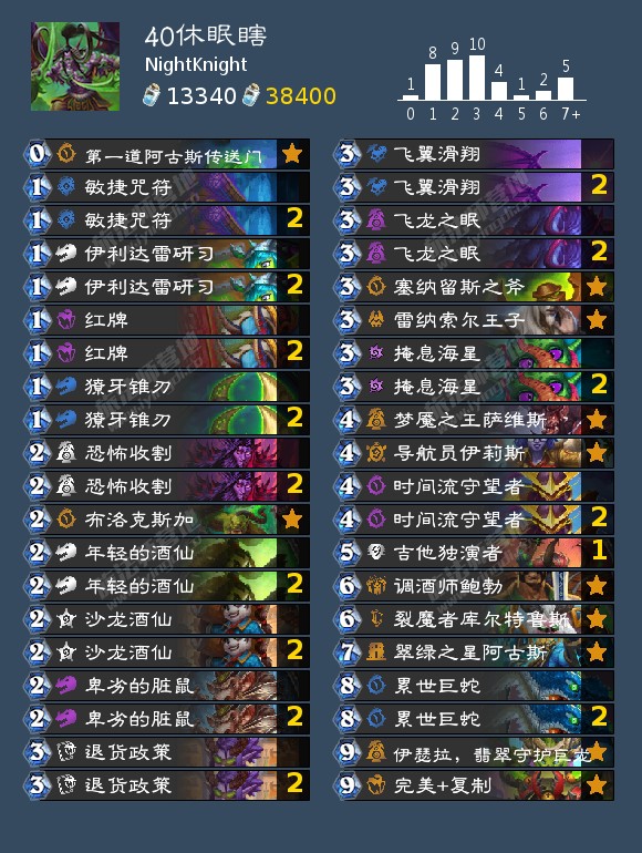 新版发现7费盗版之王托尼(注意效果现在是战吼!)和5费洛欧塞布竟然很适合奇数法的节奏,换掉了之前一直看不顺眼的7费元素激励,有兴趣者可以尝试。