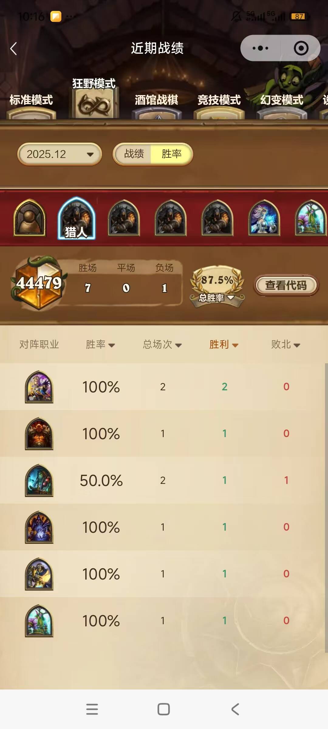 人类对快攻的探索只有5%,这个月用地沟油摩擦太多次了,遂自组一套打脸猎直接呼上传说,胜率七八成吧,附一张7-1胜率图: