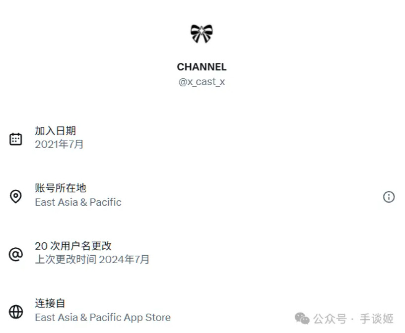 或许有人会猜测这只是channel暂时到韩国旅游,但由于X的属地不仅显示当前所在地,还会显示账号是在哪个国家/地区注册与下载应用的,直接否定了“人在韩国旅游”的解释。