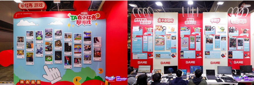 小红书游戏展台,集结了小红书上游戏开发团队的介绍,以及他们的游戏现场试玩。