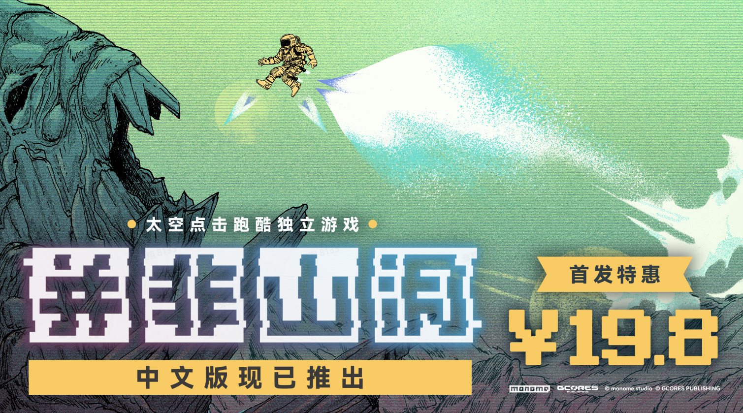 由法国双人独立游戏工作室 monome 开发的太空点击跑酷独立游戏《并非山洞》,今日在 Steam 正式推出中文版。中文版由 GCORES PUBLISHING 发行,这也是机核发行带来的首款海外工作室诚意之作。游戏现已将国区售价由 29元 下调至 22元,首发期更可享 9 折限时优惠,折后仅需 19.8元!