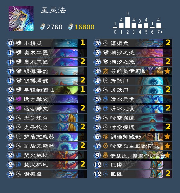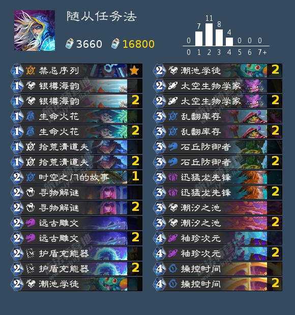 星灵法在钻石到传说分段足足有8%,而在高分段几乎没有,这套只能优控制卡组的套牌几乎没有立足之地。可能不熟悉套牌会把对局时长拖慢,而星灵法很擅长处理后期。