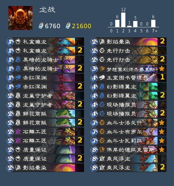 而龙战是更适合普通玩家的大众之选,依靠超模卡撑起来的卡组,缺点是几乎没有解场能力,面对每一波场面都需要靠模型硬顶。好在大部分的卡组也没法处理1费赤红深渊,2费石雕工匠。