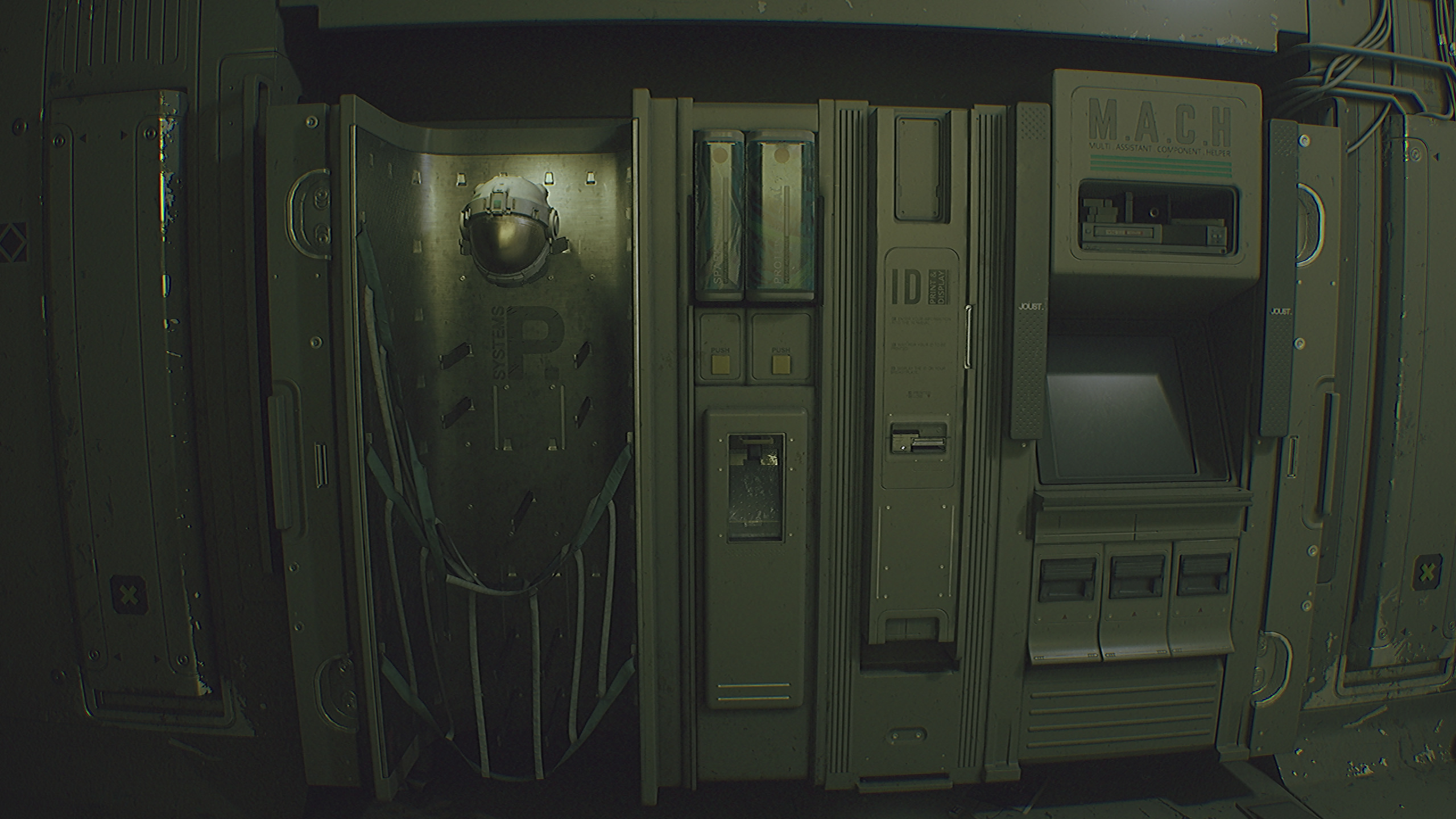 游戏共有六个章节(图就不多放了),每个章节的流程长度不一样。玩家一开始将会从*并不是冷冻仓*的地方醒来,很神奇,一般而言大家都会将太空-起始点与冷冻仓联想在一起。玩家醒来的地方,是一间趋近于廉价旅馆与监狱混合的客房,需要在新手教程后,打印自己的ID卡,然后才能出舱门。