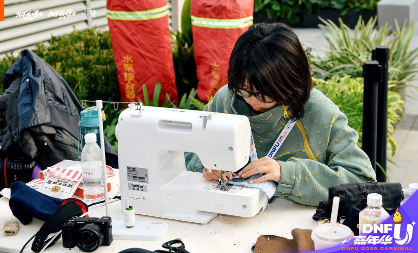 高校展区里,北京服装学院的“奇迹试衣镜”利用AR技术让玩家瞬间变身游戏形象。一旁的“奇迹缝纫机”与公益机构合作,将闲置衣物融入DNF元素进行改造重生,实现时尚与公益的结合。