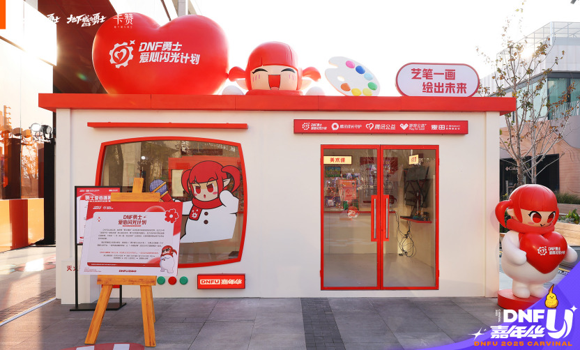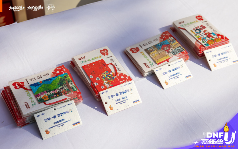 在今年DNF嘉年华的现场,有这样一个特殊的展位格外引人注目——不是炫酷的游戏体验区,也不是热闹的周边售卖处,而是一面充满童真的“勇士爱心画展”。