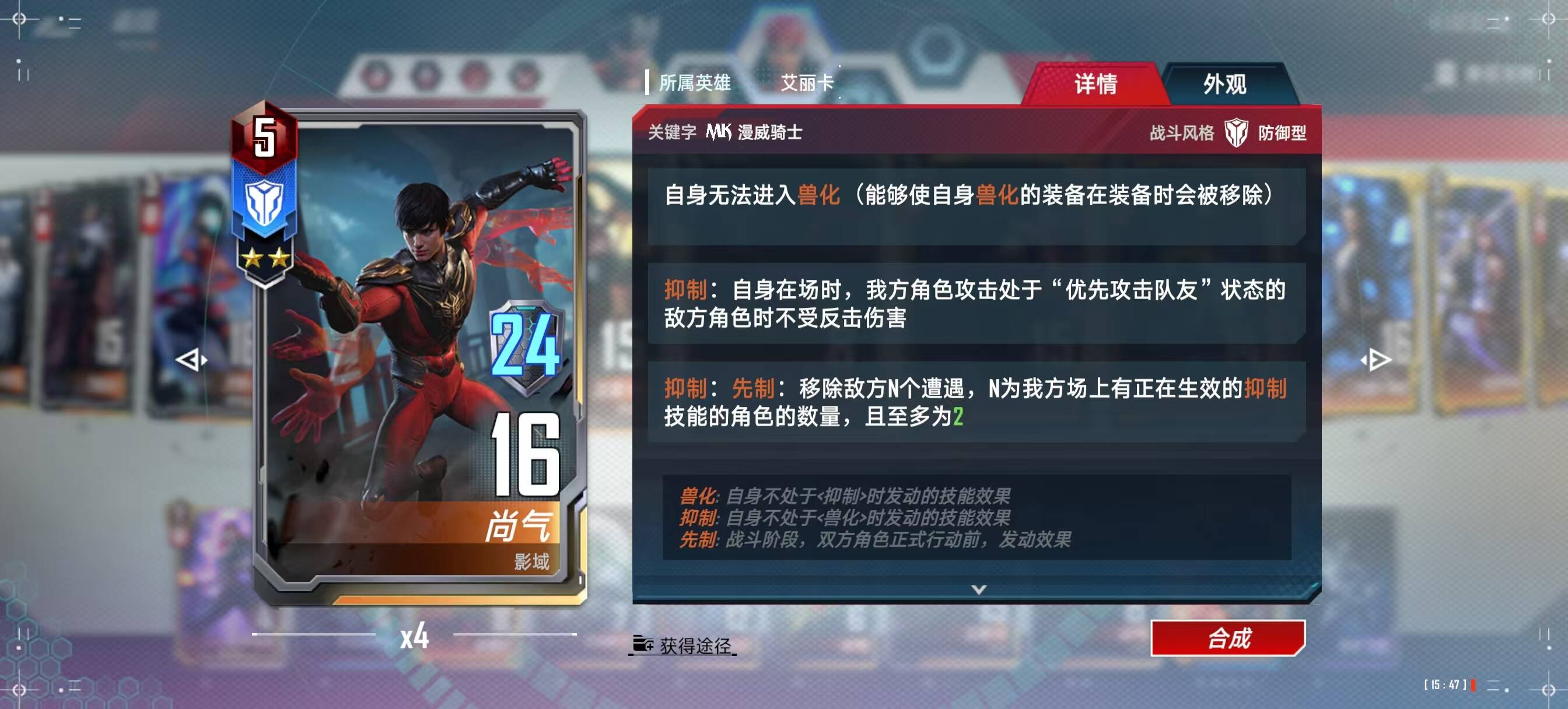 核心就两张,影域尚气和艾丽卡,其他均为过渡使用,重点卡牌分析如下: