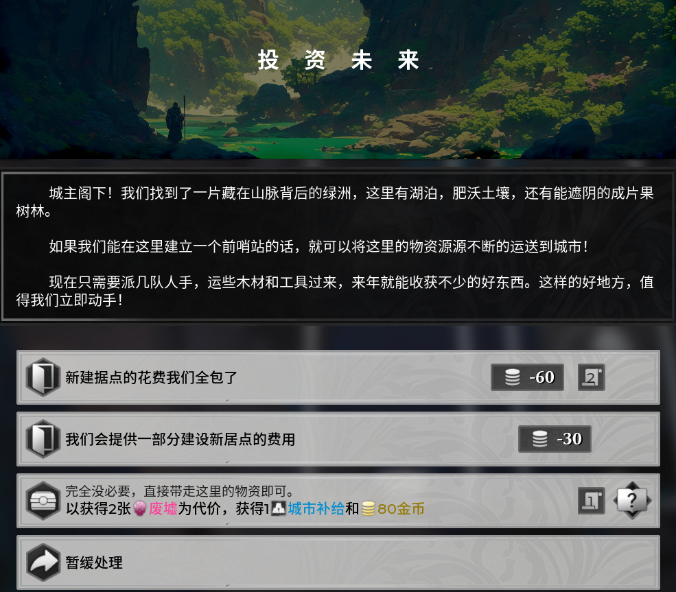 除了实机演示,游戏内也存在部分文本方面的事件,当然不仔细阅读对游戏体验影响也不大,像我大部分时候都会有钱选钱,毕竟钱是真的万能,虽然后面玩多了回顾看了下好像拿钱的几个选项都挺出生的,嗯。