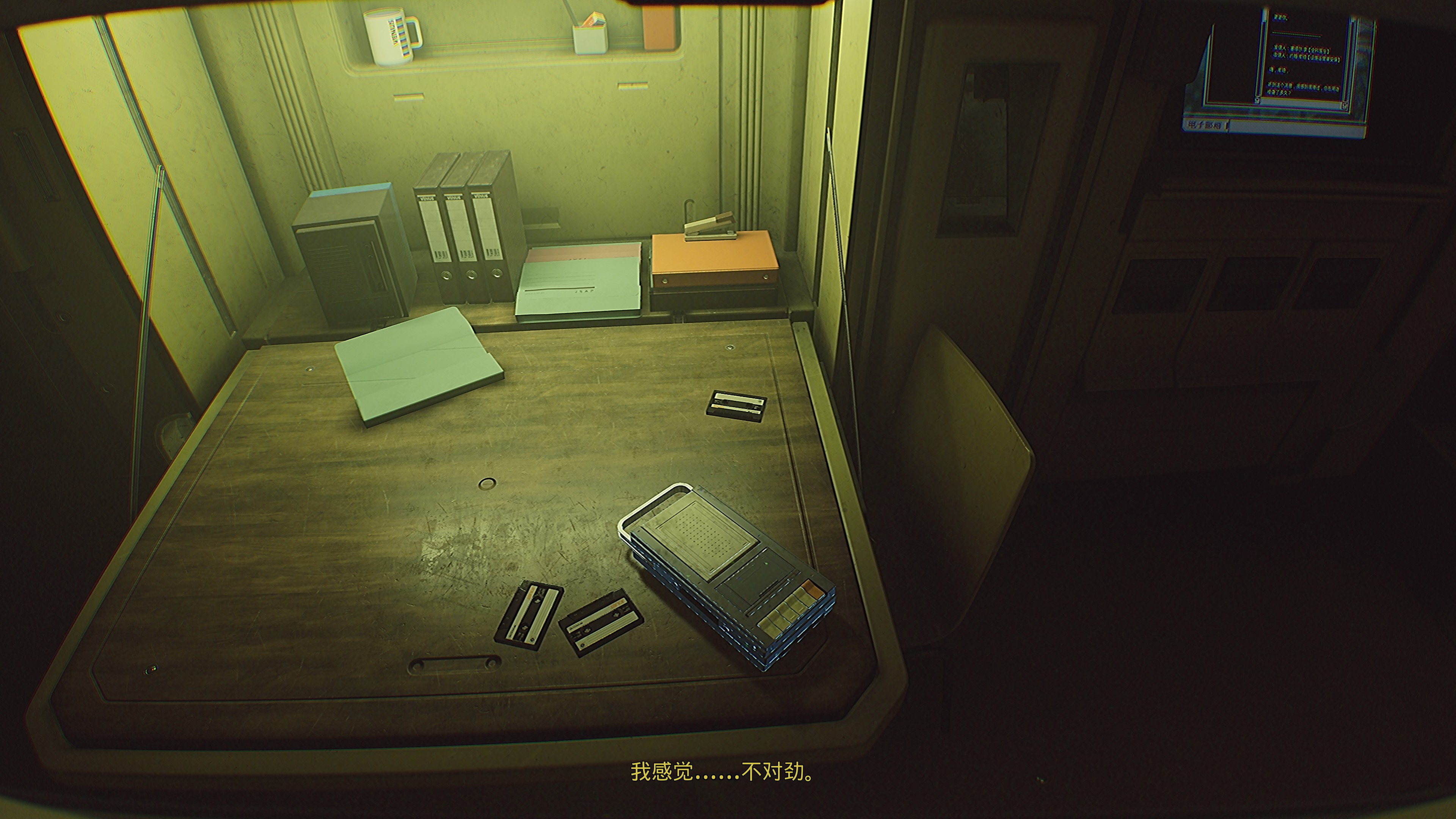 剧情方面就比较碎片化了,我们只能通过电脑里的邮件、日记和各种文档来自行脑补,前面3章还算好理解,后面几章会有点难理解,研究室的很多人因为被感染而出现了幻觉,留下的部分信息感觉有点谜语人,也许游戏本身想表达某些哲学层面的思考,我个人看得不是很明白,推荐大家去看看大佬们的解读。