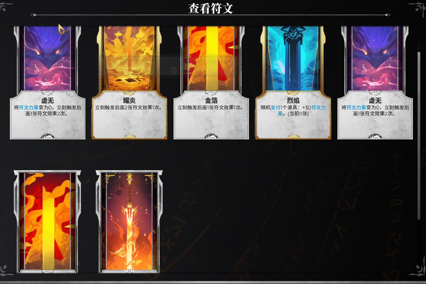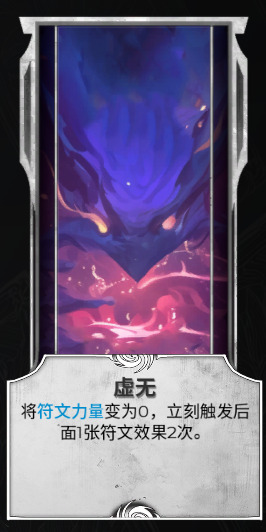 但是由于“虚无”的归零效果,并不能用它获取大量符文力量,只能用它配合一些获取额外资源的符文,比如获取“武装”或者卡牌、道具、删除等等的。