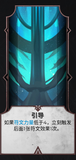 稀有度最低的这类符文要求苛刻且只能触发一次。理论上在符文力量一直维持在4以下时,只能做到后续符文多触发一次,收益一般,触发也困难,多个“引导”重叠之后后续符文甚至不方便搭配增加符文力量这种类型的。