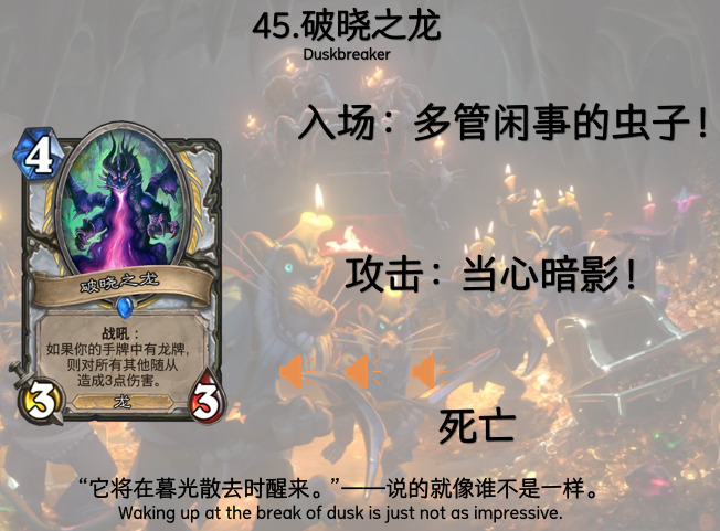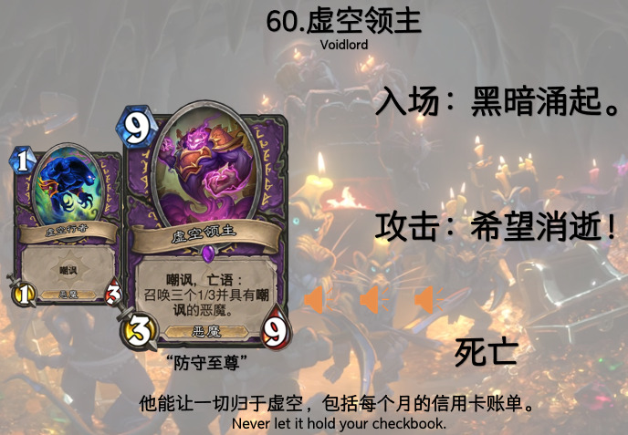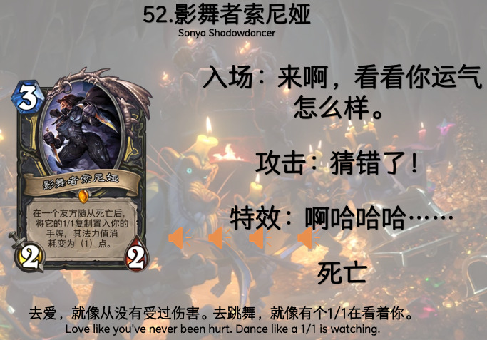 (为什么写的是“卡牌语音”不是“随从牌语音”呢?当然是因为还有两把话痨橙武附带相当丰富的语音台词咯)