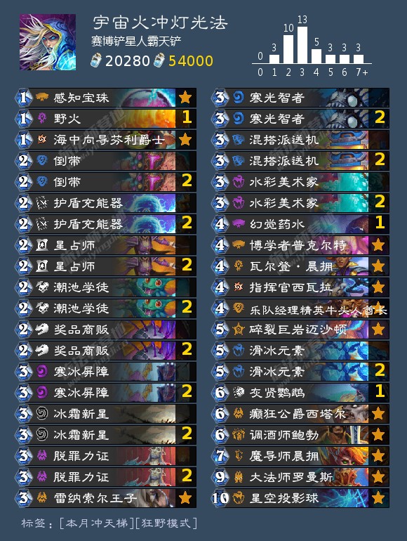 借签了常年玩乌龟法大佬的思路,改动了一部分卡牌(改几张就是自己的了),最近又狠狠优化了一下卡组,有了这套无敌的双核乌龟法(目前天梯还没见过同行),可以靠大法师灯光或者鹦鹉加野火斩杀。双核缺点就是比较卡手,优点就是:1.被破坏了大法师还有赢点,2.鹦鹉更容易实现无限(不需要外幻觉)3.简单无脑易上手(普通龟法玩着太费劲了)。综合考虑下来优点大于缺点。从五月到十二月一直用这套卡组上分,十一月玩的少,甚至没上次说十二月十星,隐藏分低得很)在这个月刚刚上传说三万多名,后面慢慢打到五千多名了,最早67%的胜率非常可观了,主要是我太菜了,卡组没问题,后面改了卡组又降了点,加了派送机器人,感觉很好用,能给硬币,能给奥秘,还能搏个梦想。