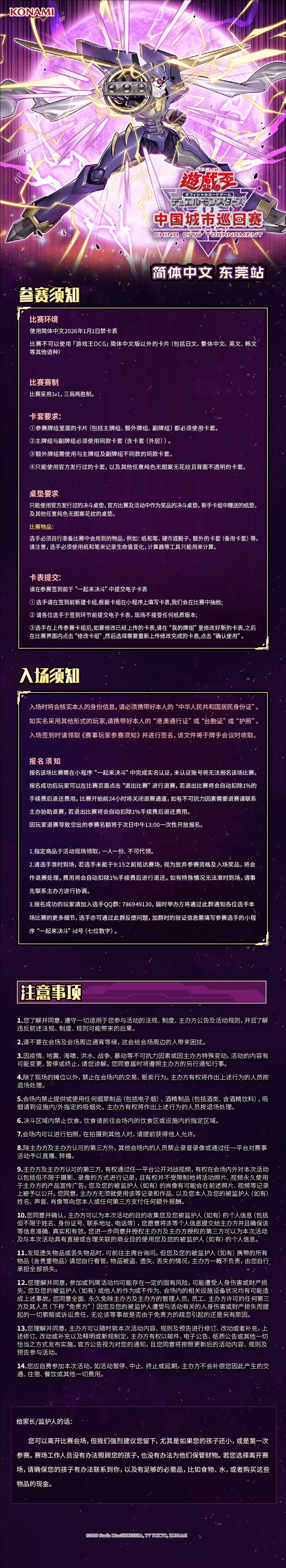 2026年1月10日,中国大陆「游戏王」巡回赛2025 简体中文 第四站——东莞站将盛大开展。