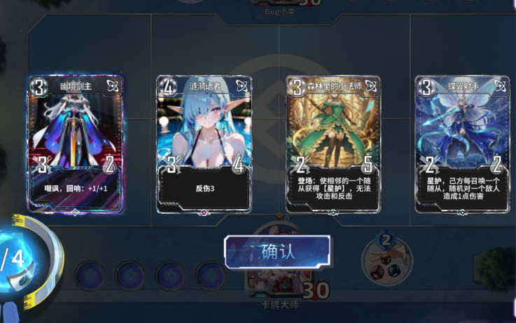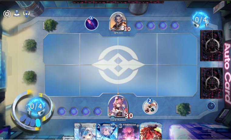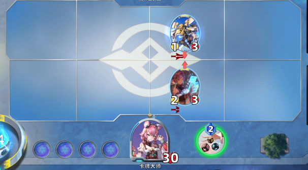 关于战斗方式,我们采用了类似炉石的卤蛋对撞机制。消耗费用后,随从可以在场地上的4个格子中部署。