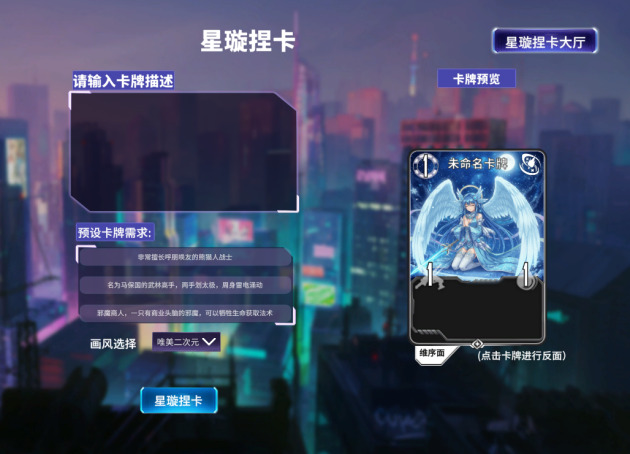 集成AI生图、语音、文字等模块,我们游戏支持玩家根据自己的想法,自主捏出想要的卡牌。