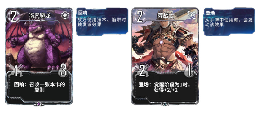区别:法术牌只需要费用足够即可在手牌中打出。