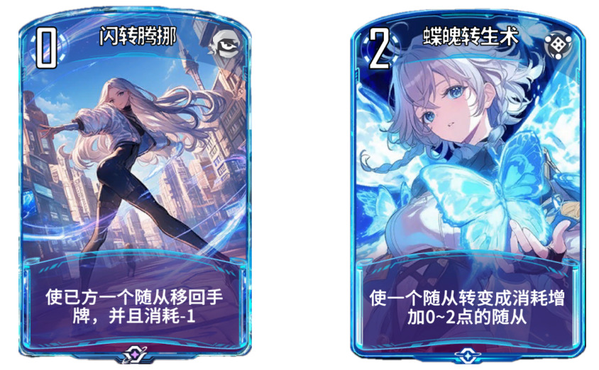 除去随从牌,《星海自走牌》还拥有法术卡与陷阱卡。为了与随从效果做出区别,我们引入了类似游戏王的效果连锁机制。