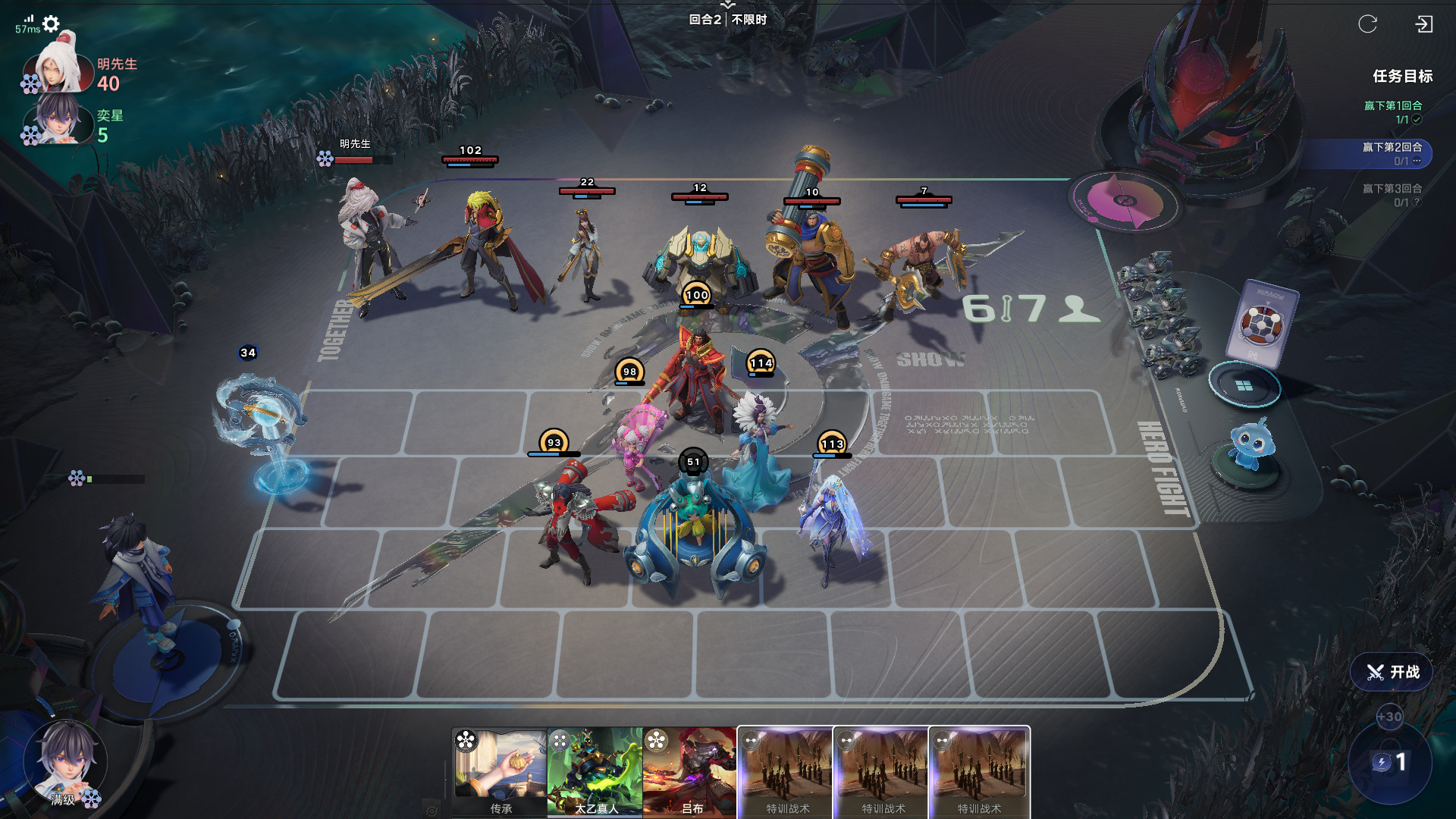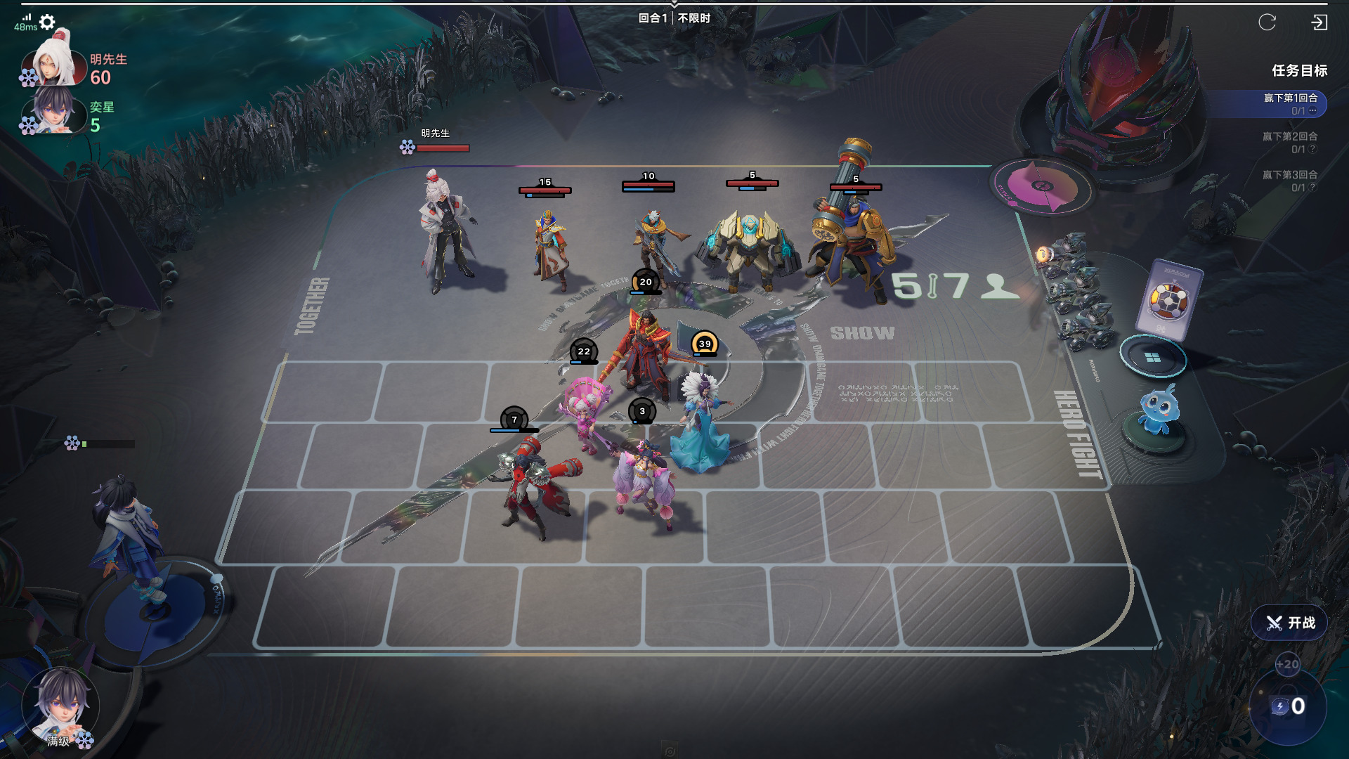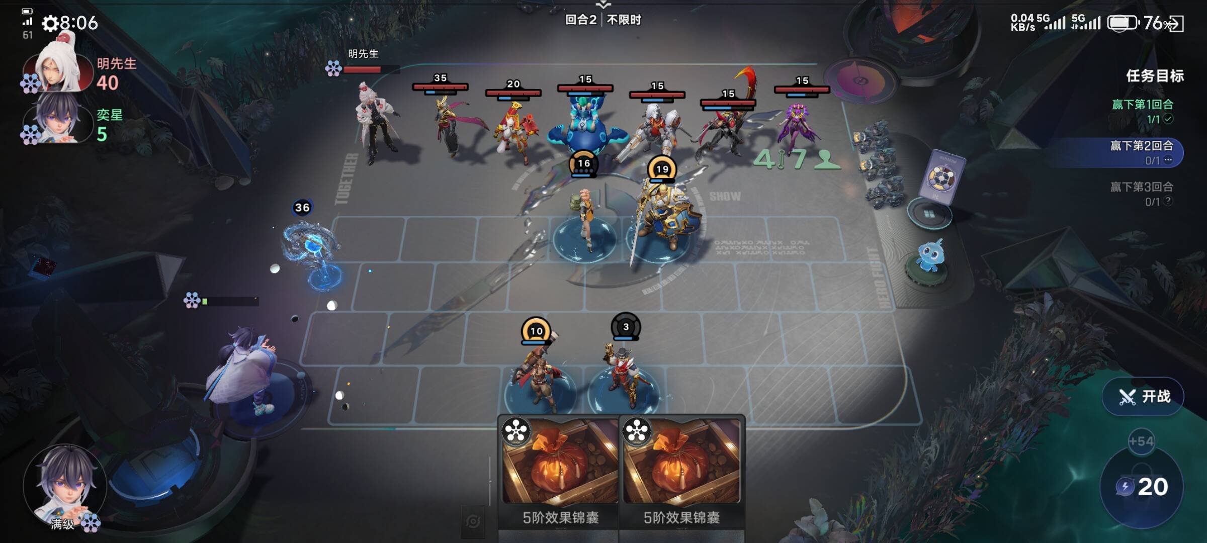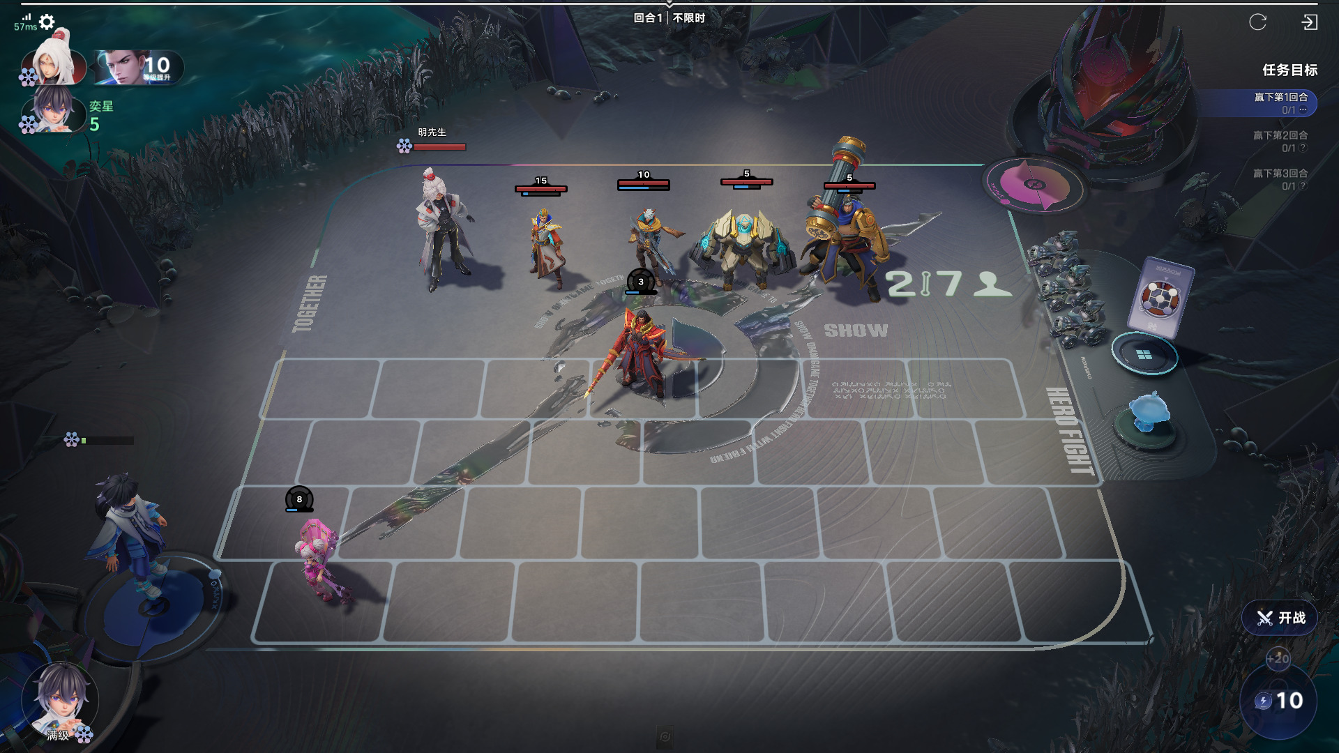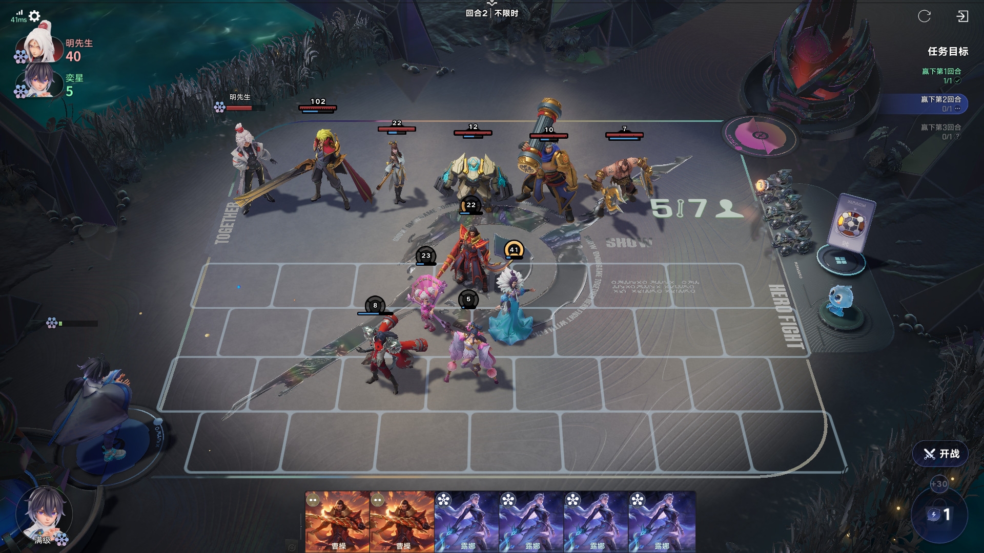 来到第二回合,商店里的姬小满、莱西奥和亚瑟,看到就买,马可波罗是顺带买来输出的。在买够3张亚瑟之后,先觉醒亚瑟,然后是莱西奥,最后是姬小满。