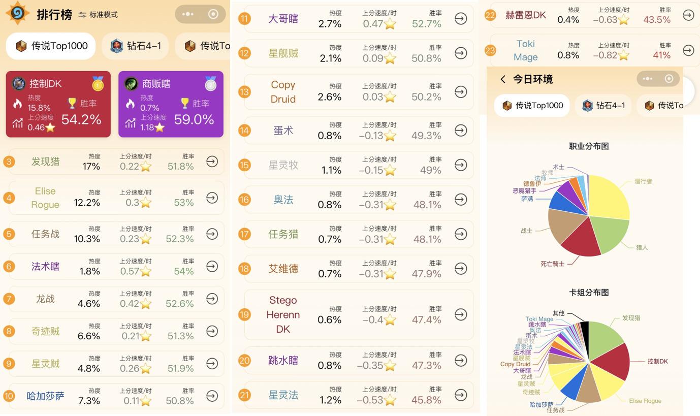 [链接] 驴子网 全服传说前1000分段 卡组数据 (微信小程序HS卡牌大师)