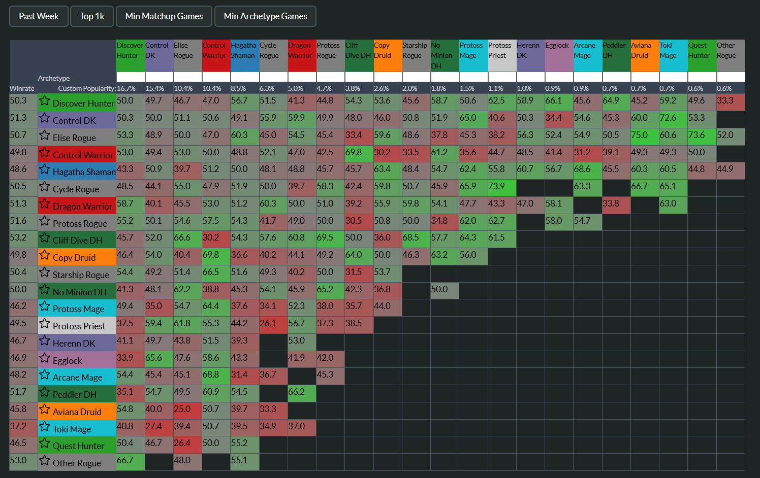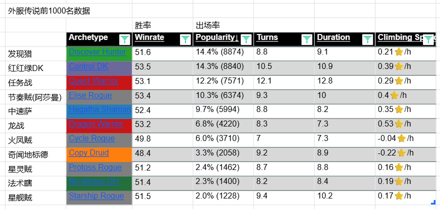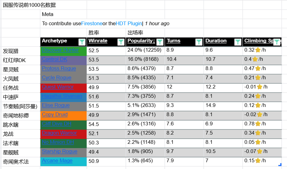 HSReplay 全服传说前1000数据 (微信小程序: HS石炉之家)