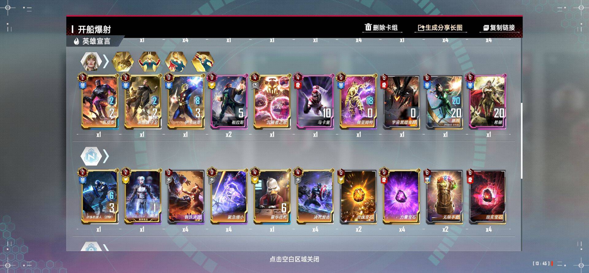 中立:五本无限宝石双滤,更方便我们找高本核心/六本手套有多少带多少给星爵,力量宝石撕牌的同时可以给两个二本红赏金装备变形破坏对面的阵容,还可以搏一手界手套的梦想(建议别抱希望),也可以根据你分段卡组来更换其它策略卡。