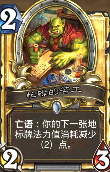 忙碌的苦工,带着张牌主要是为了给伊莉斯的地标减费用,这样就可以有更多的选择空间,比如可以考虑伊莉斯捏10费标,减费后能在8费回合下,或者10费回合下配合英雄技能打爆发。面对otk和偏防守的职业时,伊莉斯地标选复制加攻,能同时选到的话配合食尸鬼能打一波很大的爆发。