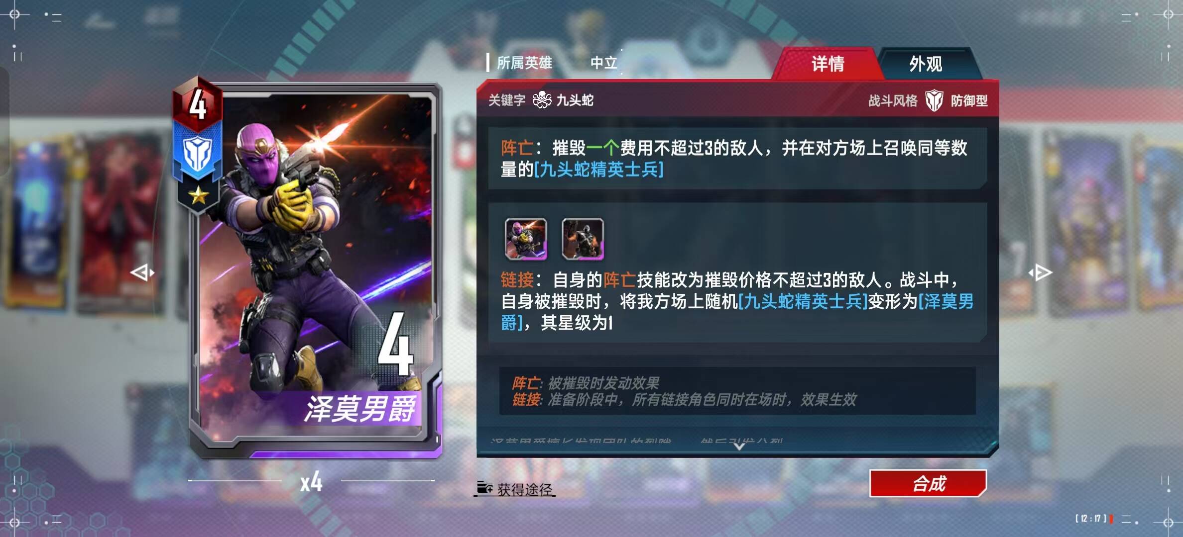 核心思路:依靠泽莫和2+1交叉骨抓5价格一下的怪,4星泽莫可以摧毁4个并变出4个九头蛇士兵,九头蛇士兵又自带嘲讽,可以配合暴风女链接持续触发吹风,因为吹风会减半战力,所以大身材可以一战。